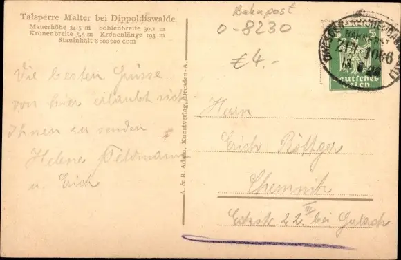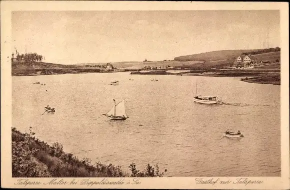Ansichtskarte, Postkarte, Talsperre, Stausee, Staudamm, Staumauer, Gasthof