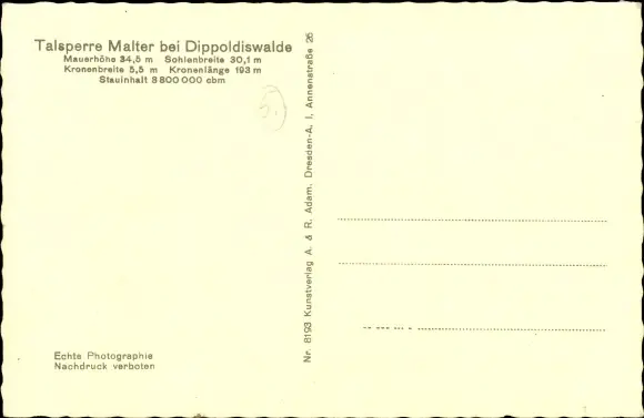 Ansichtskarte, Postkarte, Talsperre, Stausee, Staudamm, Staumauer