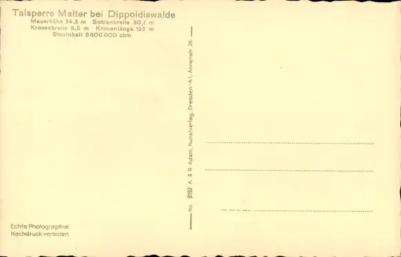 Ansichtskarte, Postkarte, Talsperre, Stausee, Staudamm, Staumauer