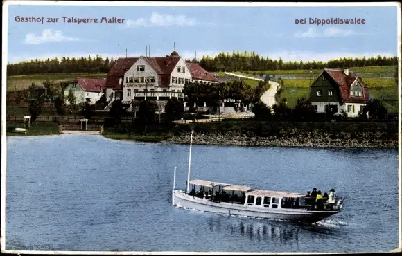 Ak Malter Dippoldiswalde im Osterzgebirge, Gasthof zur Talsperre Malter, Boot