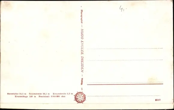 Ansichtskarte, Postkarte, Talsperre, Stausee, Staudamm, Staumauer, Gasthof