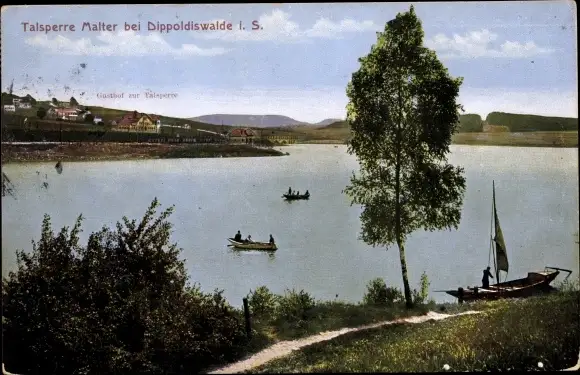 Ak Malter Dippoldiswalde im Osterzgebirge, Talsperre Malter, Gasthof zur Talsperre, Boote