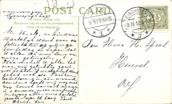Zustand, siehe Scan, gelaufen, 1912 - ca 14 cm X 9 cm