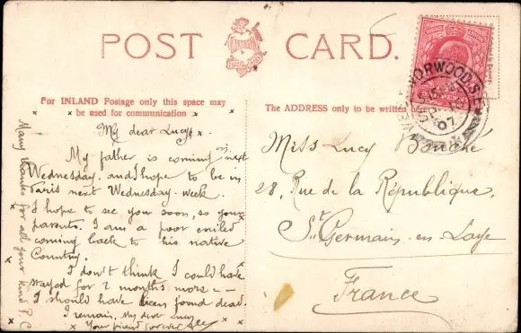 Zustand, siehe Scan, gelaufen, 1907 - ca 14 cm X 9 cm