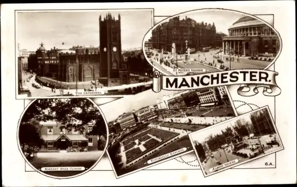 Ak Manchester England, St Peters Square, The Cathedral, Piccadilly Gardens, Albert Square