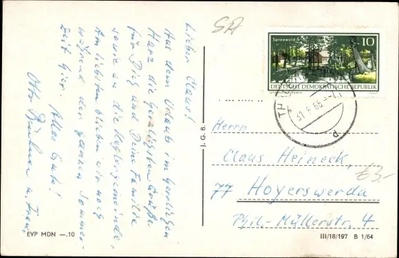 Zustand, siehe Scan, gelaufen, 1966 - ca 14 cm X 9 cm
