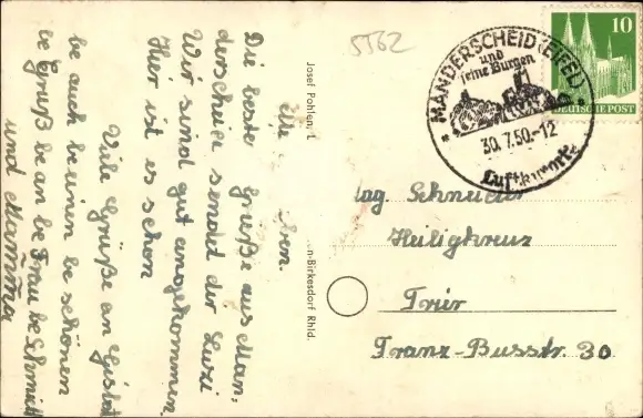 Zustand, siehe Scan, gelaufen, 1950 - ca 14 cm X 9 cm