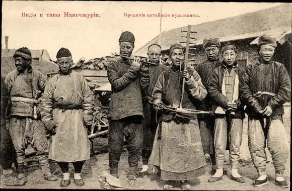 Ak Mandschurei China, Chinesen mit Musikinstrumenten