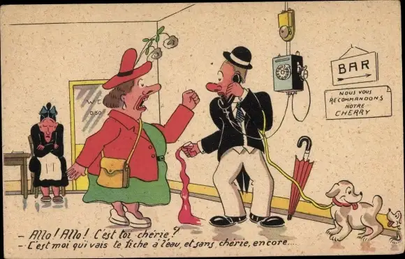 Ak Mann beim Telefonieren, Ungeduldige Frau, Hunde