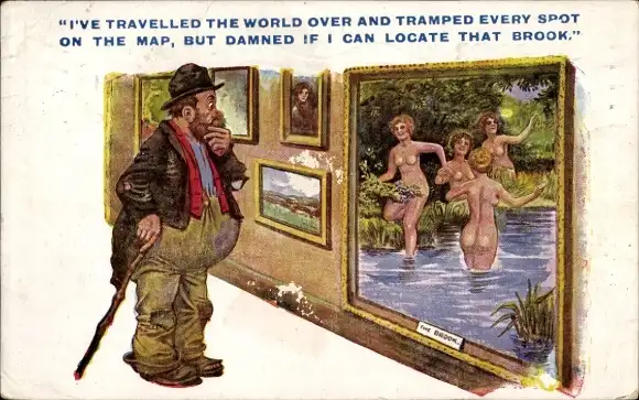 Ak Mann bewundert ein Bild, Nackte badende Frauen