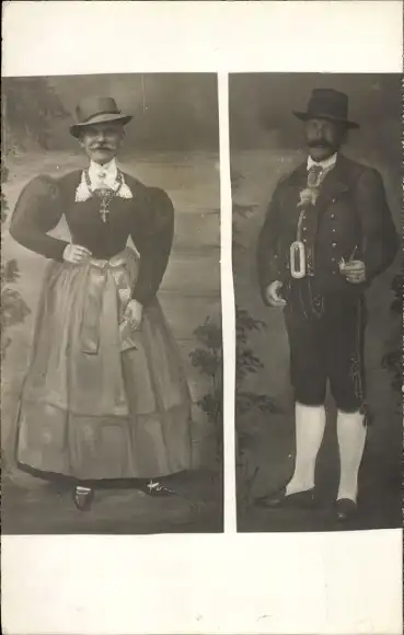 Ak Mann in Volkstracht und in Kleid, Portrait, Pfeife, Tourist