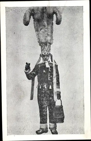 Ak Mann in belgischer ? Tracht, Federschmuck