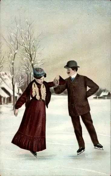 Ak Mann mit Frau beim Schlittschuhlaufen