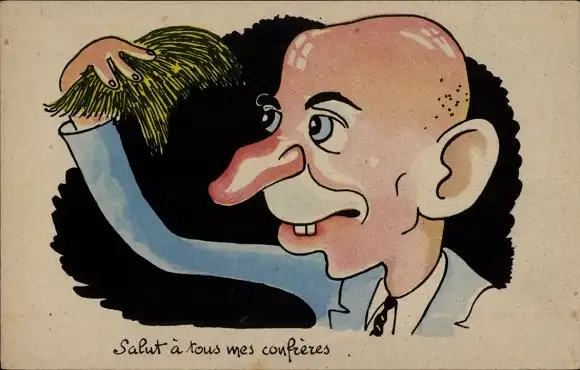 Ak Mann nimmt sein Toupet ab
