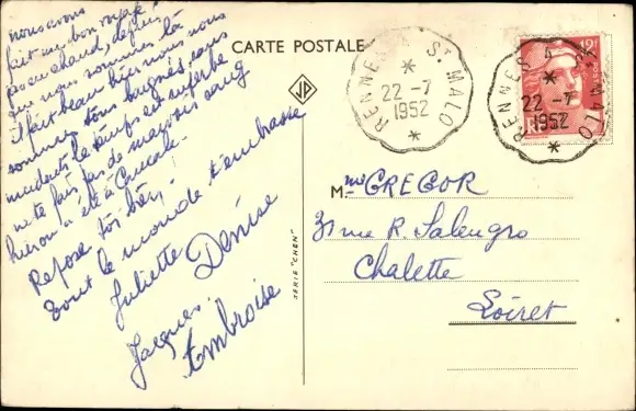 Zustand, siehe Scan, gelaufen, 1952 - ca 14 cm X 9 cm