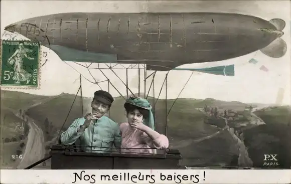 Ak Mann und Frau in einem Luftschiff, Fotomontage