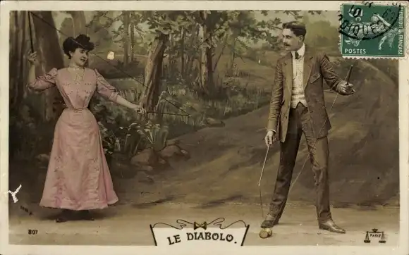 Ak Mann und Frau mit Diabolo, Spielzeug