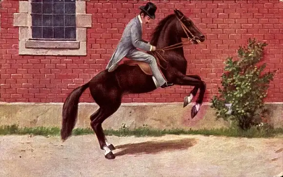 Ak Mann zu Pferde, Braunes Pferd, Zylinder