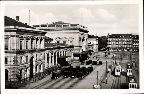 Ak Mannheim, Bahnhof, Autos, Straßenbahnen