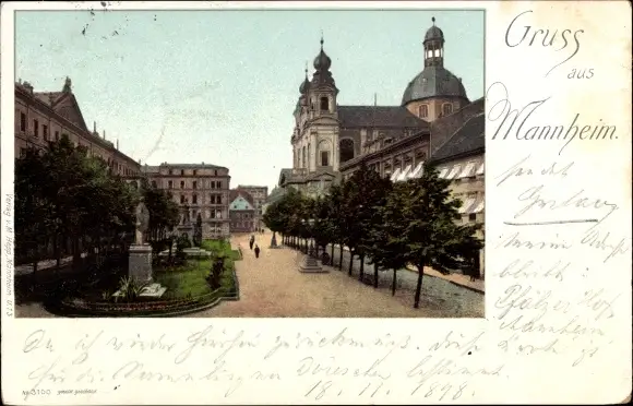 Ak Mannheim, Straßenpartie mit Denkmal