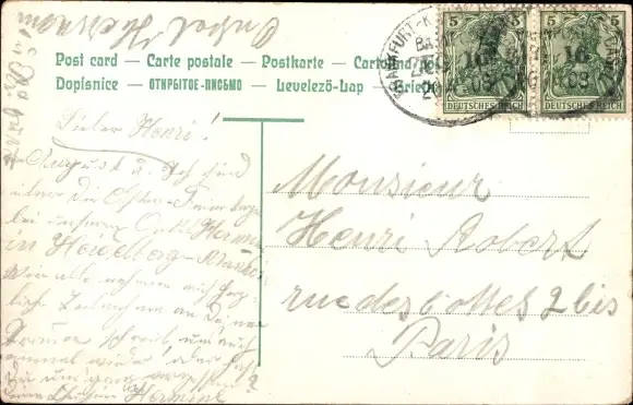 Zustand, siehe Scan, gelaufen, 1909 - ca 14 cm X 9 cm