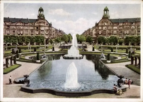 Ak Mannheim in Baden, Friedrichsplatz, Augustaanlage, Fontäne