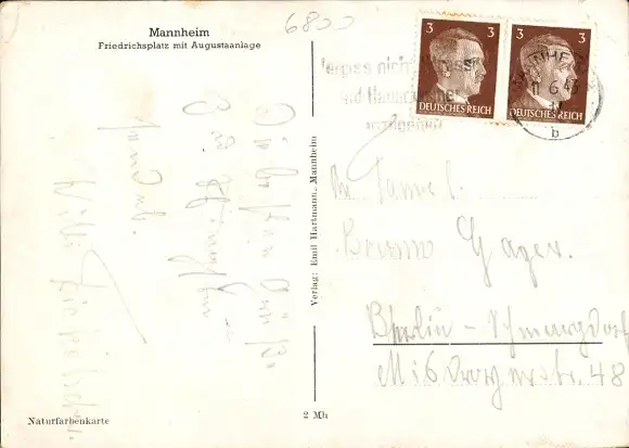 Zustand, siehe Scan, gelaufen, 1943 - ca 15 cm X 11 cm