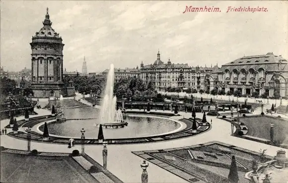 Ak Mannheim in Baden, Friedrichsplatz, Fontäne