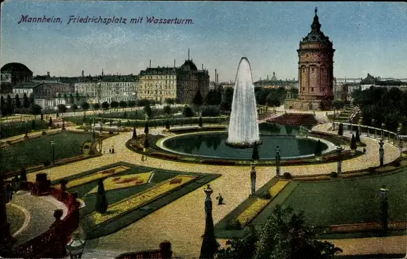 Ak Mannheim in Baden, Friedrichsplatz, Wasserturm, Rosengarten, Fontäne