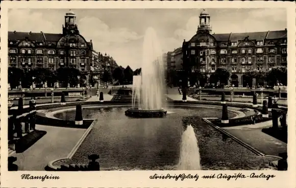 Ak Mannheim in Baden, Friedrichsplatz mit Augusta-Anlage, Springbrunnen