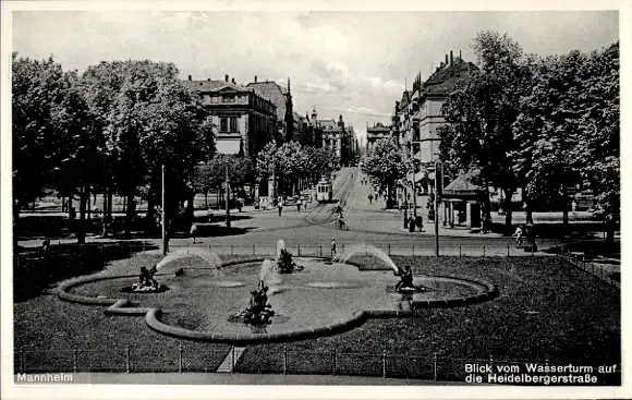Ak Mannheim in Baden, Heidelbergerstraße, Blick vom Wasserturm, Springbrunnen