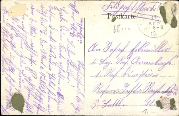 Zustand siehe Scan, gelaufen, 15, 1915 - ca 14 cm X 9 cm