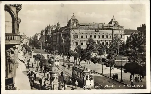 Ak Mannheim in Baden, Planken, Hauptpost, Tram