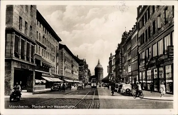 Ak Mannheim in Baden, Planken, Wasserturm, Straßenbahn