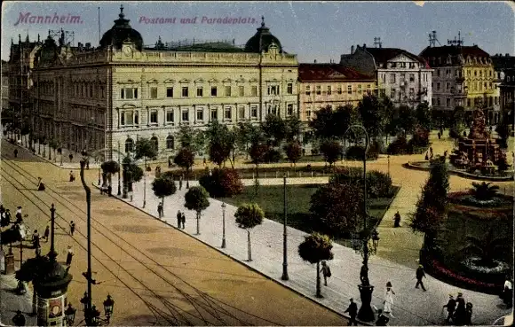 Ak Mannheim in Baden, Postamt, Paradeplatz
