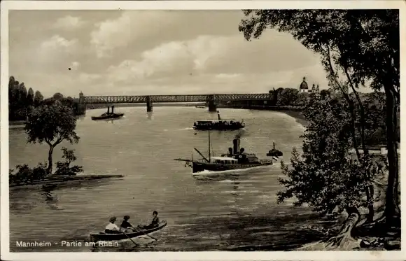 Ak Mannheim in Baden, Rhein, Brücke, Schiffe
