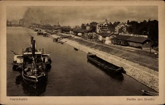 Ak Mannheim in Baden, Rhein, Dampfer, Bootsanleger, Boote