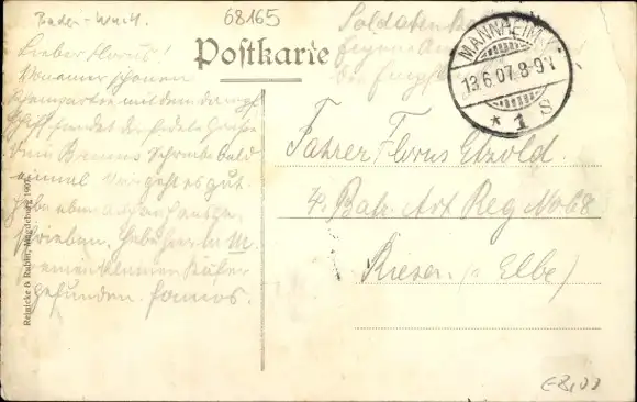 Zustand, siehe Scan, gelaufen, 1907 - ca 14 cm X 9 cm