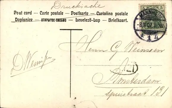 Zustand, siehe Scan, gelaufen, 1907 - ca 14 cm X 9 cm