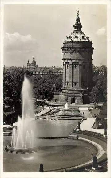 Ak Mannheim in Baden, Wasserturm, Friedrichsplatz, Springbrunnen