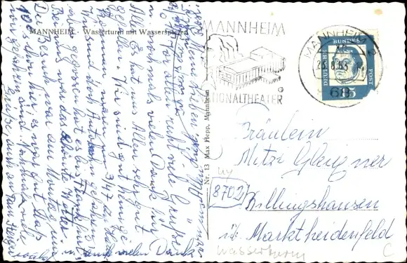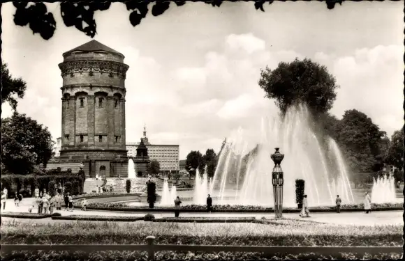Ak Mannheim in Baden, Wasserturm mit Wasserspielen