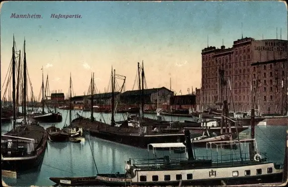 Ak Mannheim in Baden Württemberg, Hafenpartie, Boote