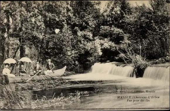 Ak Mansle Charente, Schleuse, Vue prise des Iles, Ruderboot