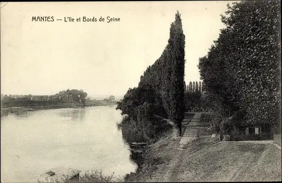 Ak Mantes Yvelines, Die Insel, Ufer der Seine