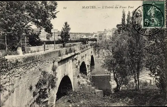 Ak Mantes Yvelines, L'Entree du Vieux Pont