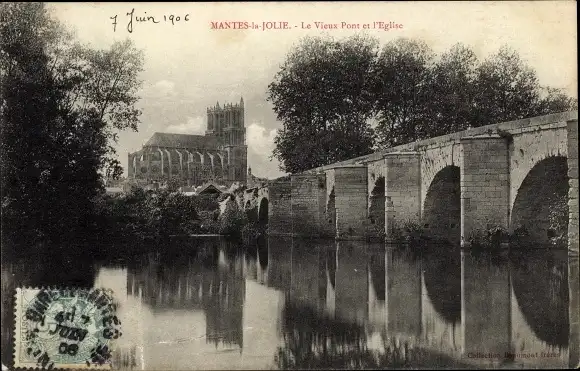 Ak Mantes la Jolie Yvelines, Le Vieux Pont, L'Eglise