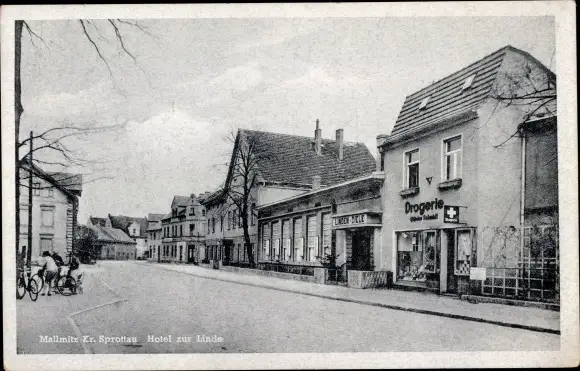 Ak Małomice Mallmitz in Schlesien, Hotel zur Linde, Drogerie, Apotheke