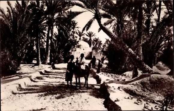 Ak Marabout dans l'Oasis, Maghreb, Esel, Palmen