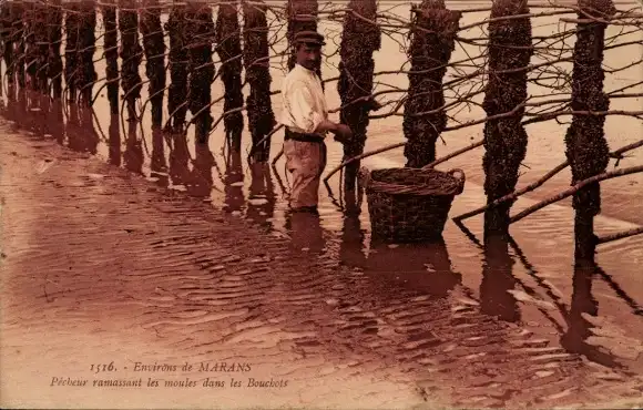 Ak Marans, Pecheur ramassant les moules dans les Bouchots