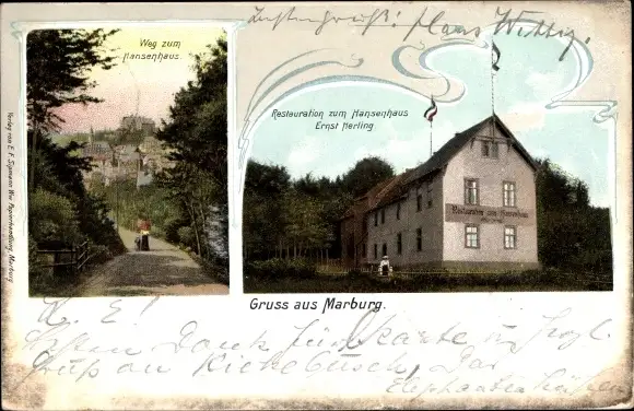 Ak Marburg an der Lahn, Restauration zum Hansenhaus, Wegpartie